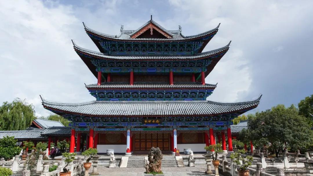 如果大家去麗江古城旅游,經(jīng)過“天雨流芳”的牌樓向前,會(huì)看到氣勢(shì)恢弘的古建筑群,大門口還有徐霞客的題字,這就是“宮室之麗,擬于王者”的木府。