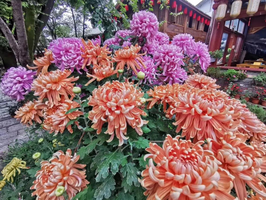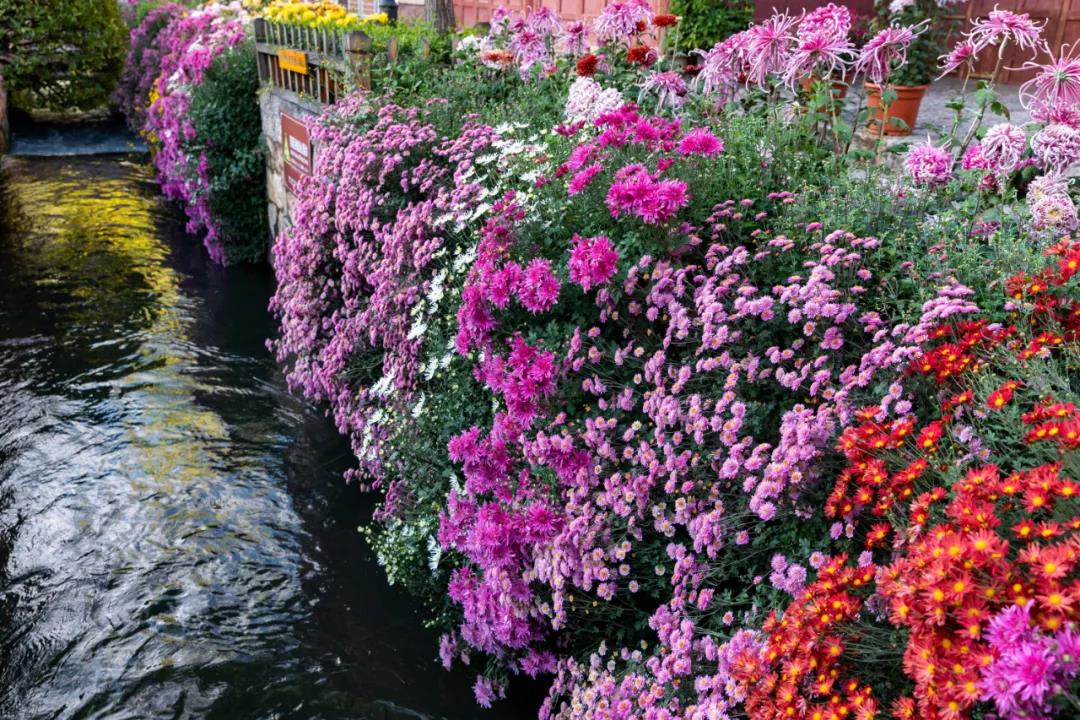 姹紫嫣紅,整個古城似乎被菊花包圍。