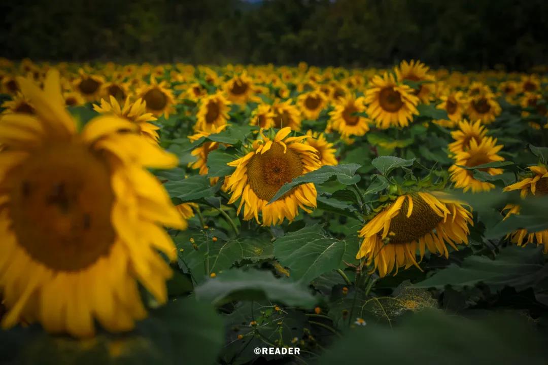 大片的金黃,一下子就牢牢抓住了你的目光,這時,你只會遵循身體的本能,下車,奔向這片向日葵的海洋。