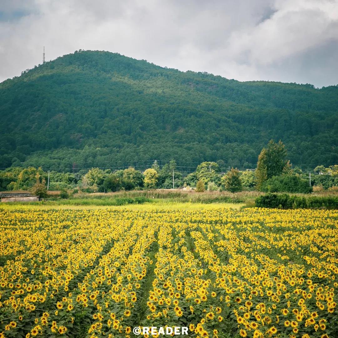 如果自駕來麗江,從大麗高速下來,沿著青龍北路一直南行,不一會,大片的向日葵就會像子彈一樣擊中你的心房,哪怕你早有準(zhǔn)備。