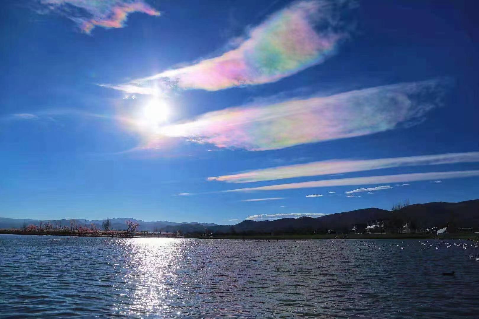 更別說麗江在最近一段時間頻繁收到的天空情書了——形態(tài)飄逸靈動,色彩艷麗綺幻的云朵讓每一個麗江人驚呼七彩祥云現(xiàn)世,后面的日子定然可以平安順遂。于是朋友圈里瘋狂轉(zhuǎn)發(fā)的視頻圖片就像是菩提樹上掛著的一個個小紅簽,承載著大家美好的祈愿。