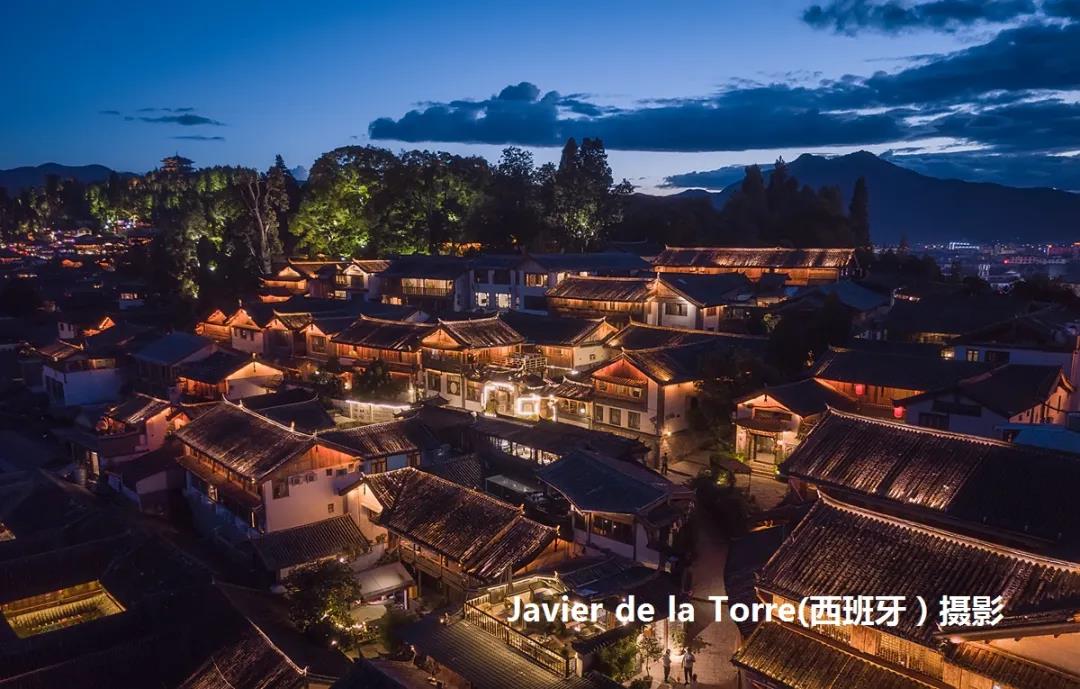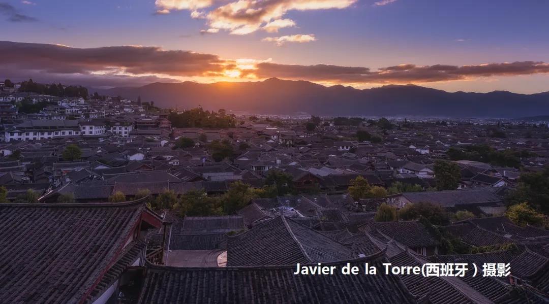 日漸西移,倦鳥知還,麗江古城進(jìn)入了另外一個華美的世界。滿天的晚霞,像是給這座古城披上了一層金紗,夜晚來臨之前的時刻,明與暗的光影交錯,似真似幻。