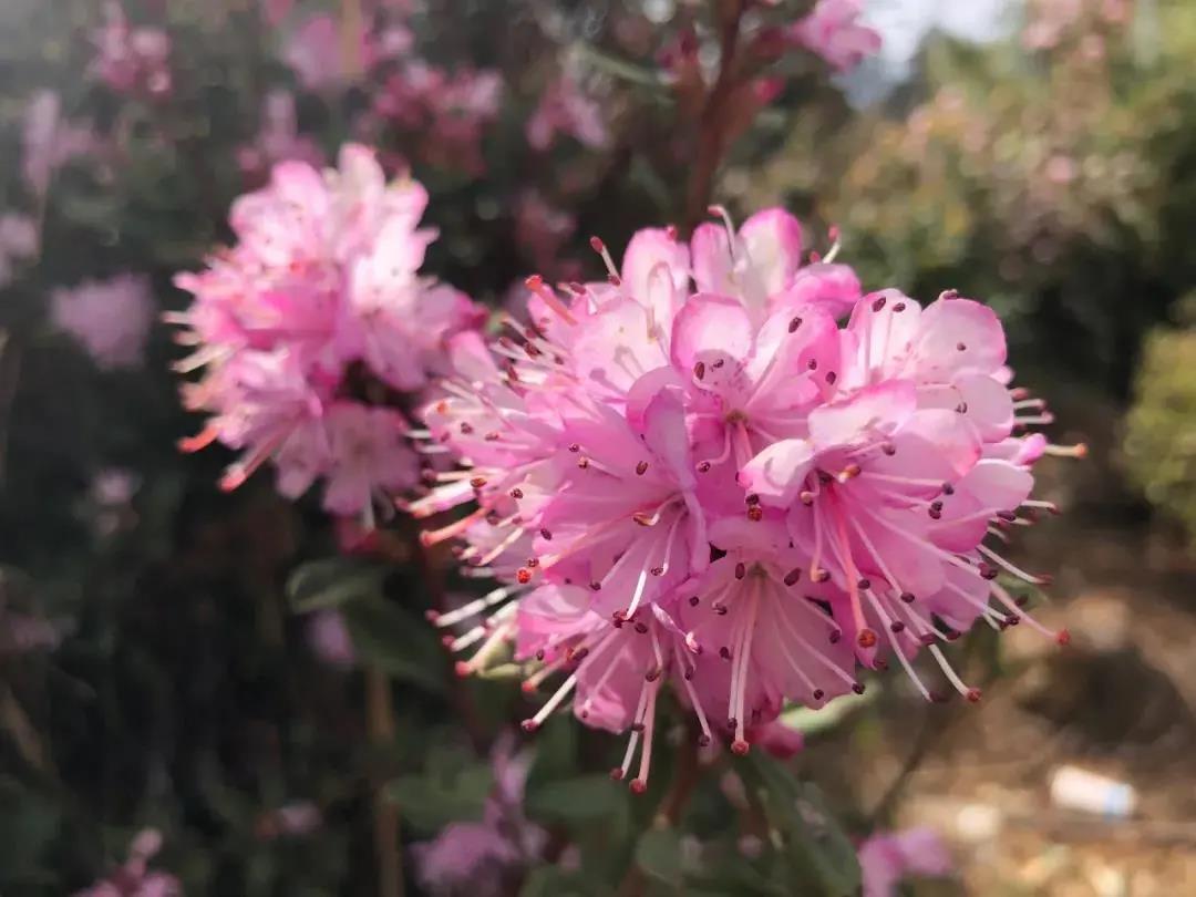 紅色的杜鵑綻放得熱烈奔放,一簇簇,一團(tuán)團(tuán),紅彤彤的一片,如躍動(dòng)的火焰;白色的杜鵑雅致高貴,把枝頭裝扮得一片雪白;粉色的杜鵑,美如佳黛,讓人感到一種別樣的生機(jī)。紅、白、粉等主色調(diào),把山梁點(diǎn)綴得分外妖嬈,彰顯出一派春的氣息。