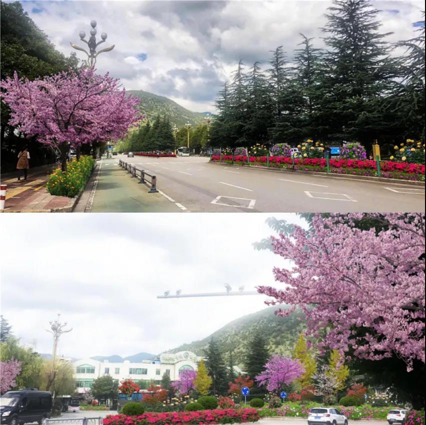 在雪山路的設(shè)計(jì)中,北段將以原有的櫻花大道為基礎(chǔ),對道路景觀進(jìn)行優(yōu)化改造,將中央綠化帶的喬木替換為櫻花,移除原有部分桂花樹,并對地被灌木優(yōu)留劣替,增植月季等多年生景觀花卉,增加攝影點(diǎn),使櫻花大道的美名更勝。替換花池內(nèi)原有苗木,以混色月季替代,并對周邊變電箱等裝置進(jìn)行美化處理,提升路口的景觀效果。