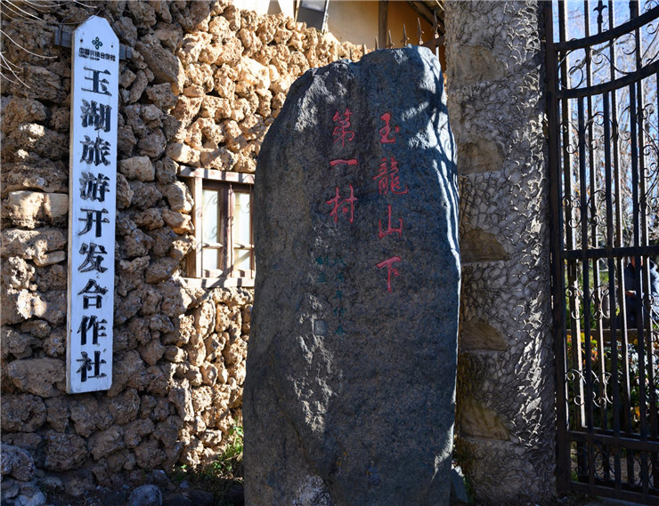 玉湖村就坐落在玉龍雪山腳下,從白沙古鎮(zhèn)開車過去10多分就可以到,公交17路和6路也可以到玉湖村廣場。如今的玉湖村也有一定程度的旅游開發(fā),好在并不嚴重,依然保持著最初的風貌,在玉湖村廣場旁可以看到這塊石碑,石碑上刻有“玉龍山下第一村”七個大字。關于玉湖村的建村歷史,并沒有太多的記載,但它的歷史絕對比白沙古鎮(zhèn)更為悠久,據(jù)說早在明代時,木氏先祖就在此開挖人工湖、興建避暑夏宮、養(yǎng)鹿場等,而最早生活在這里的人正是為納西王護宮養(yǎng)鹿的人,為木氏先祖的發(fā)源地之一,在許多納西民歌中也經(jīng)常提到這里的玉湖和雪山鹿場。