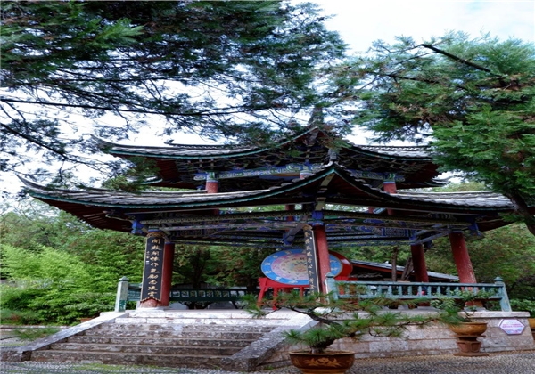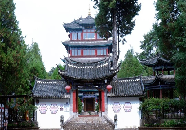 樓邊13個(gè)飛檐翹角,寓意為玉龍雪山十三峰;