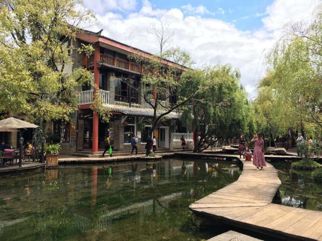 束河古鎮(zhèn)依山傍水,集山寨之奇、水鄉(xiāng)之秀于一體,形成“古道、泉水、人家”的獨(dú)特景觀。古鎮(zhèn)中泉水清澈、波光閃爍,房前屋后,菜園田邊繞,民居錯(cuò)落有致,給人一種世外桃源般的美感。