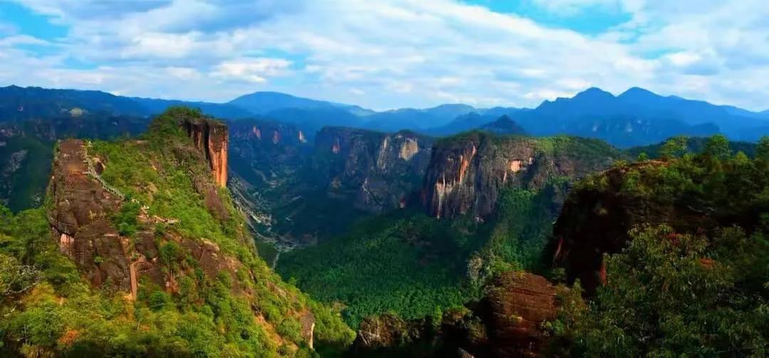 丹霞峰叢、谷、柱、懸臂、龜裂紋幾乎隨處可見。