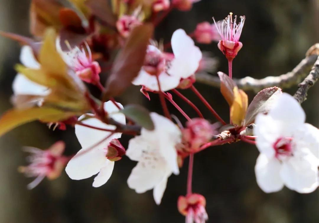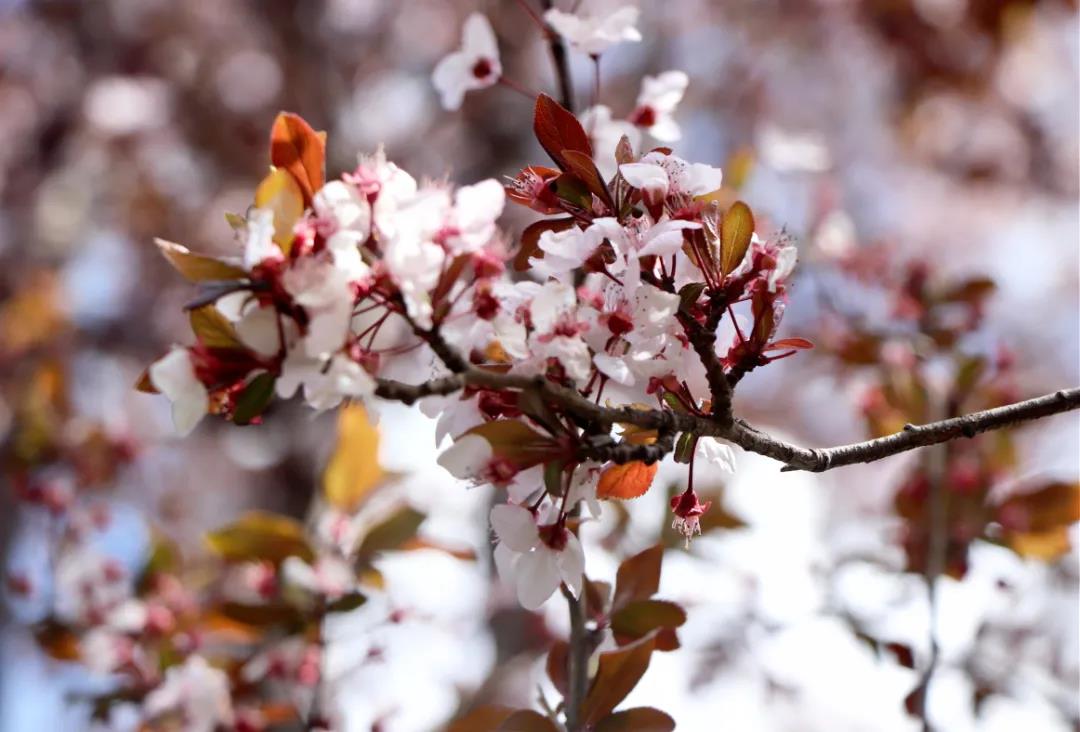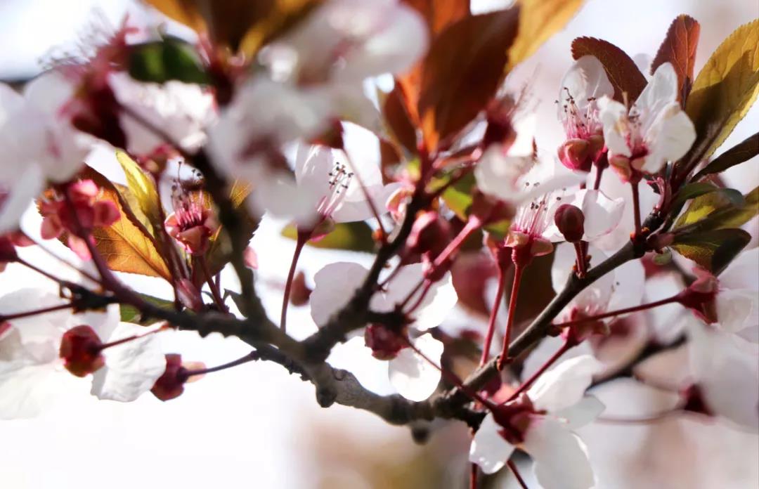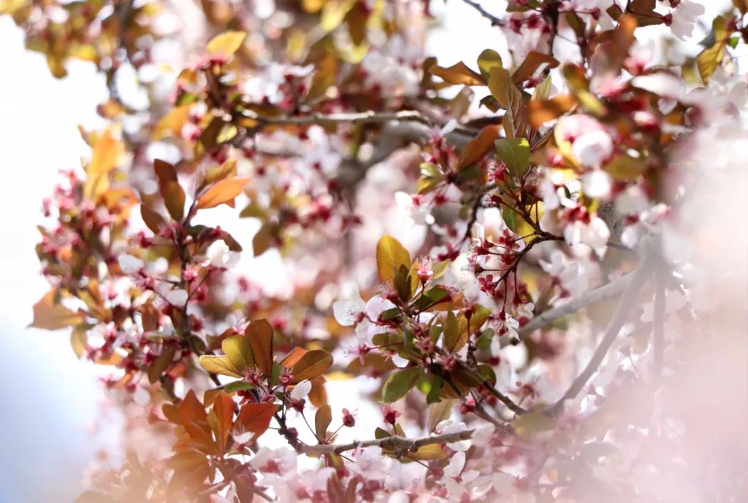 潔白的花瓣裹著淡粉色的花蕊,綴滿枝丫,如幾分冰雪寒白梅,似若許春里俏桃花,減抹三分桃俏麗,褪去兩分梅孤傲,簡潔淡然的恰恰好~